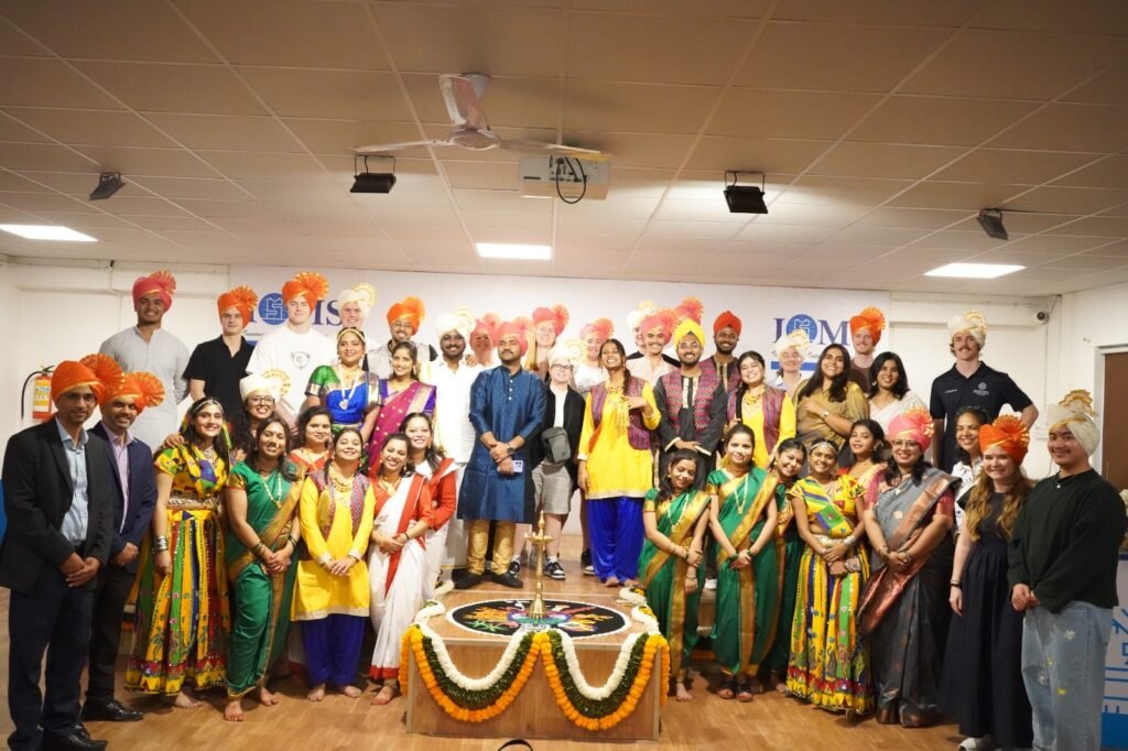 The students of ISMS Group of Institutions showcased a vibrant glimpse of India through their presentation and dance performances highlighting the food, festivals, traditional attire and business significance of different regions accompanied by colourful and lively performances that emphasized the rich and diverse heritage of the country followed by a sumptuous lunch presenting Maharashtrian cuisines. In the second part of the day, the guests were taken on a campus tour by ISMS students who shared about their experiences and memories of college life while networking with their UK peers. In the evening, they were introduced to the famous Dhol Tasha of Maharashtra. The students joyfully enjoyed the Dhol Tasha, danced to the energetic tunes and even tried few moves with their ISMS peers.