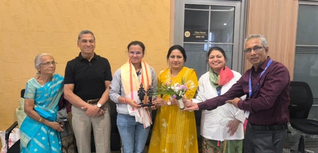 यानंतर डॉ.सुशीला कवाडे यांच्या हस्ते गंगा कदम व श्री. अनिल सामराणी यांचा सत्कार करण्यात आला. आपल्या भाषणात डॉ.सुशीला कवाडे म्हणाल्या, “सातत्यपूर्ण प्रयत्न आणि मेहनत यशाकडे घेऊन जात असते.” दृष्टीदोष असूनही गंगा कदम यांनी संघासाठी व स्वतःच्या आयुष्यासाठी घेतलेले परिश्रम प्रेरणादायी असल्याचे त्यांनी सांगितले. तसेच रुग्णालयाच्या माध्यमातून अनेकांच्या आयुष्यात पुन्हा स्पष्ट दृष्टी देण्याचे कार्य सुरू असून, भविष्यात कोणत्याही प्रकारच्या मदतीसाठी रुग्णालय सदैव त्यांच्या पाठीशी राहील, अशी ग्वाही दिली.डॉ. रेश्मा मेहता यांनी आपल्या भाषणात संघभावनेचे महत्त्व अधोरेखित करत सांगितले की, “टीम म्हणून काम केल्यासच सर्वोत्तम परिणाम मिळतात आणि त्याचमुळे भारतीय संघ आज यशस्वी ठरतो.”